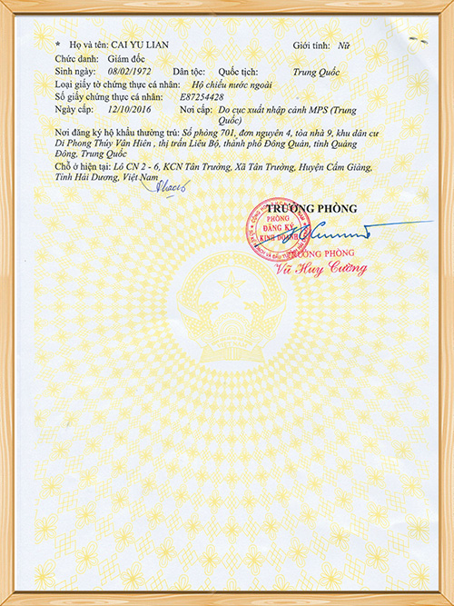 世邦塑膠-越南營業執照