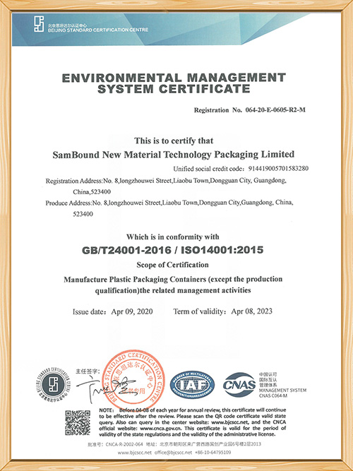 世邦塑膠-環境管理體系認證證書